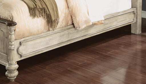 Plymouth Collection by Flexsteel King Poster Bed Quality veneers and solid acacia wood Shabby chic design with contrasting wood finishes Paneled c...