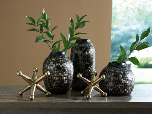 Ashley FurnitureOriginal price $155.94Original price $155.94 - Original price $155.94Original price $155.94Current price $119.95$119.95 - $119.95Current price $119.95| /Elevate your decor with this striking accessory set. Its sleek black vases, adorned with delicate goldtone accents, are perfect for displaying your...