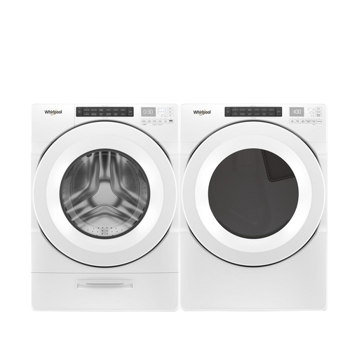 WhirlpoolWhirlpool� White Front Load Laundry Pair with a 4.5 cu. ft. capacity front load washer and a 7.4 cu. ft. capacity front load gas dryer.